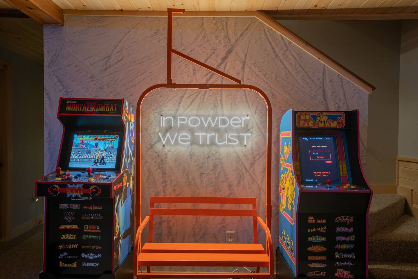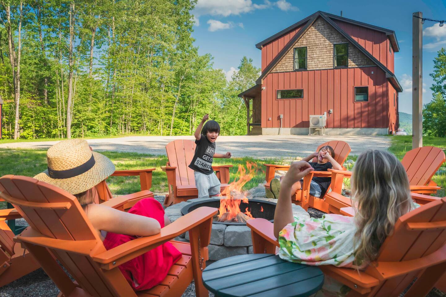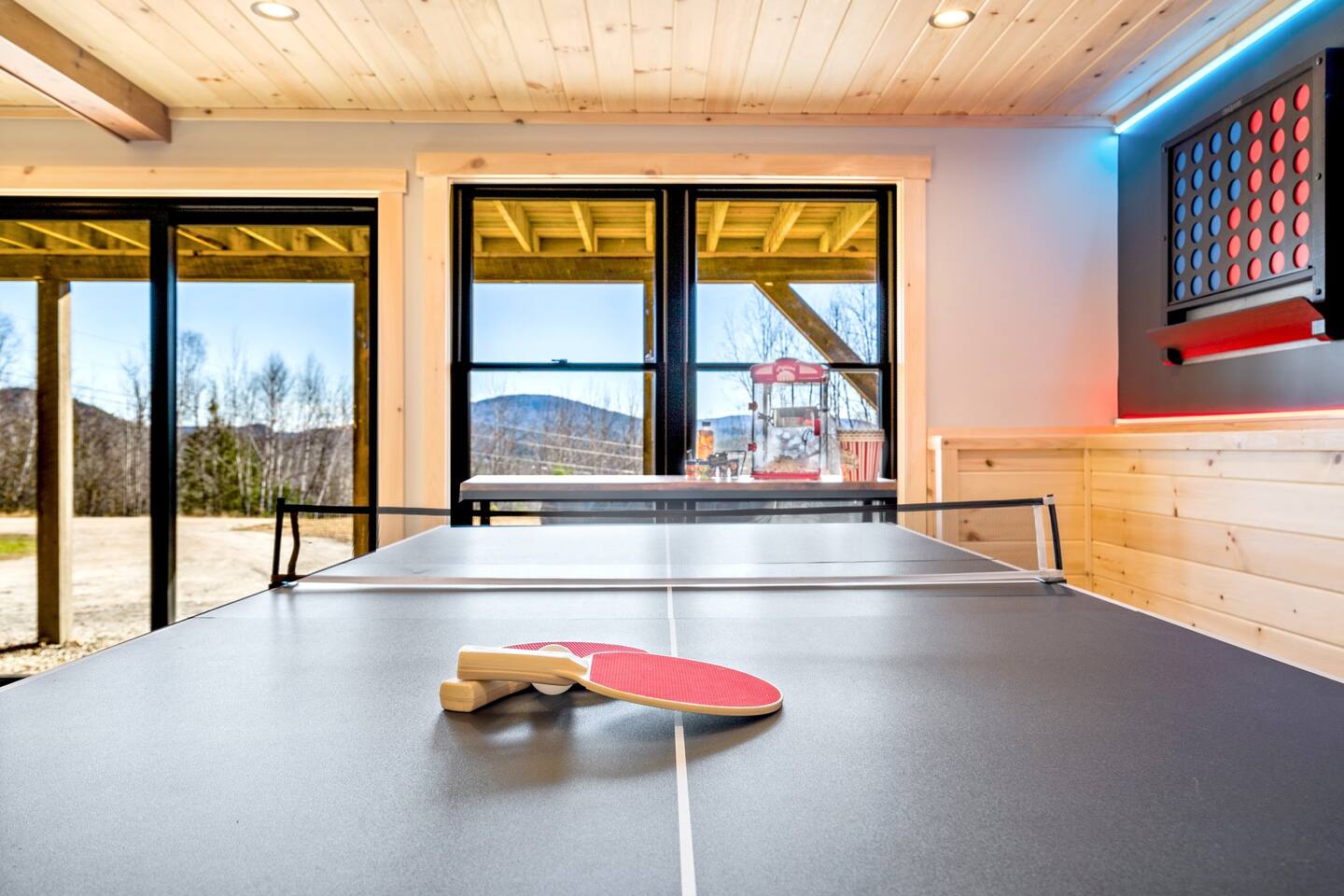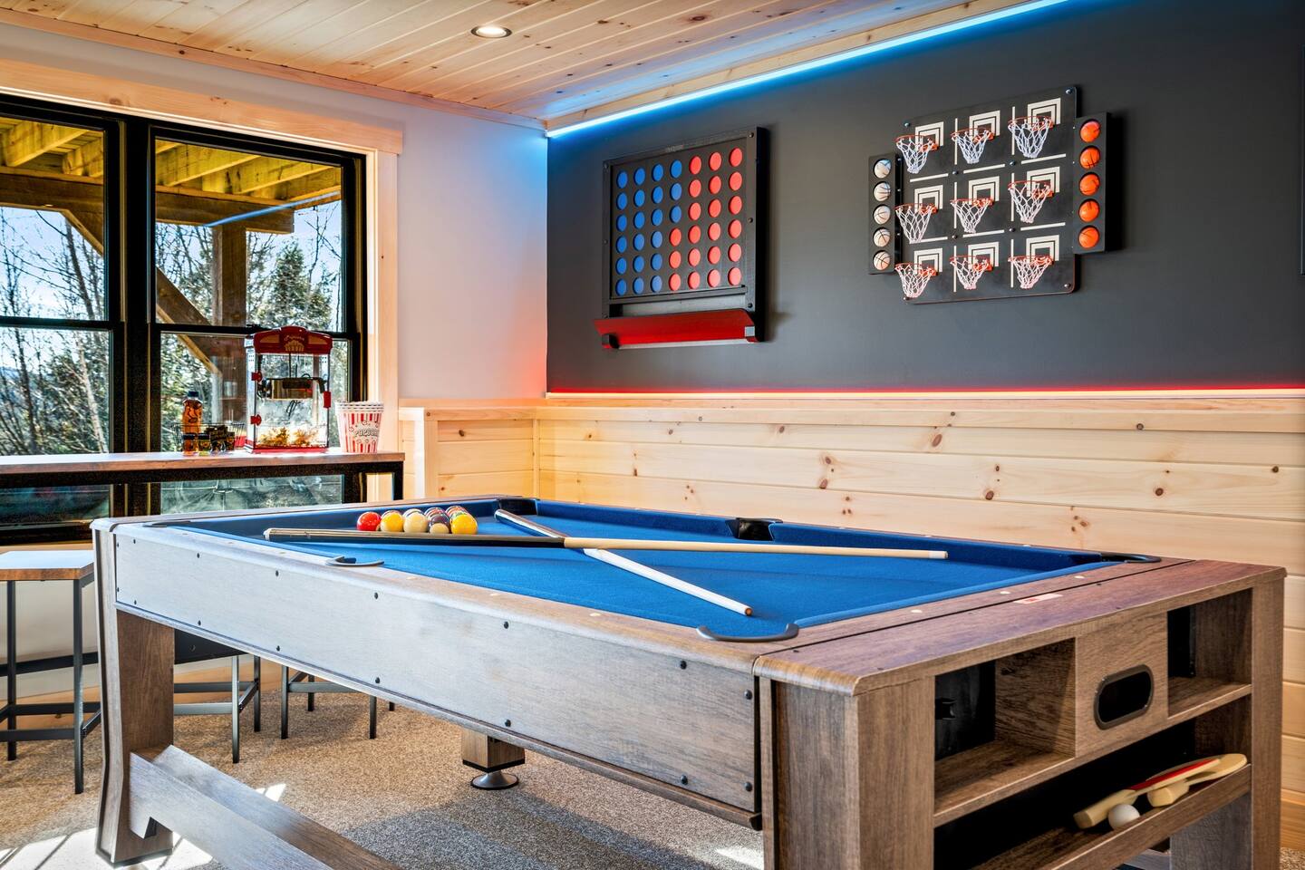 Escape to Hideaway Havens in Bethel—two stunning chalets just 2 mins apart on a peaceful street, close to skiing, dining & outdoor fun. Sleeps 29. Embrace breathtaking mountain views, soak in 2 hot tubs, relax in a barrel sauna, roast s’mores at 2 fire pits, and play in game rooms with arcades, pool table, air hockey, ping pong & karaoke. Enjoy fireplaces, king beds, chef’s kitchens, BBQ grills, children's swing sets & more. Baby, kid & pet-friendly. Make magical mountain memories together.