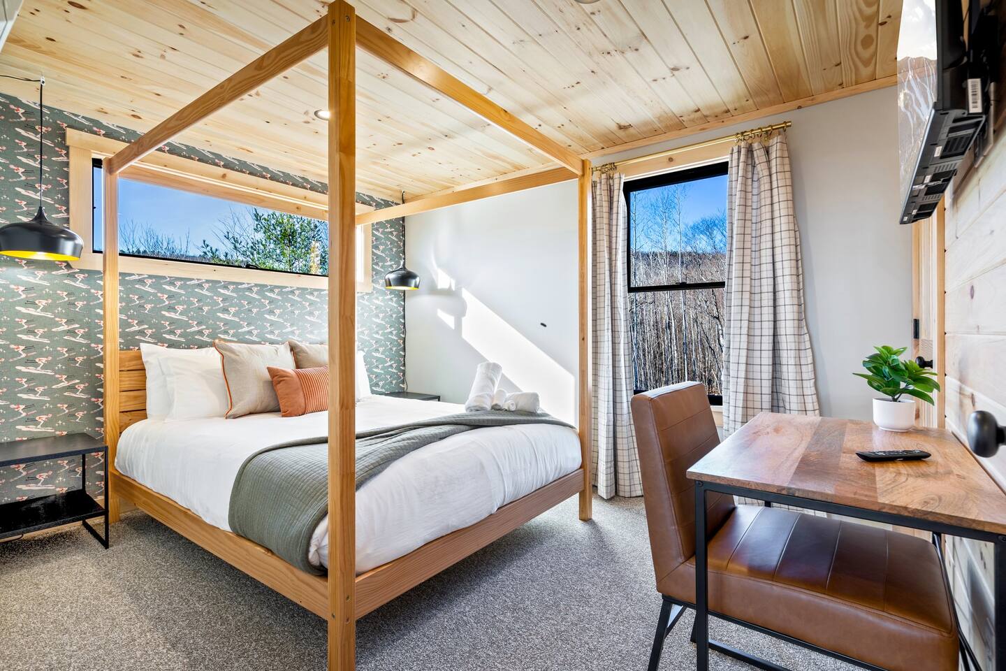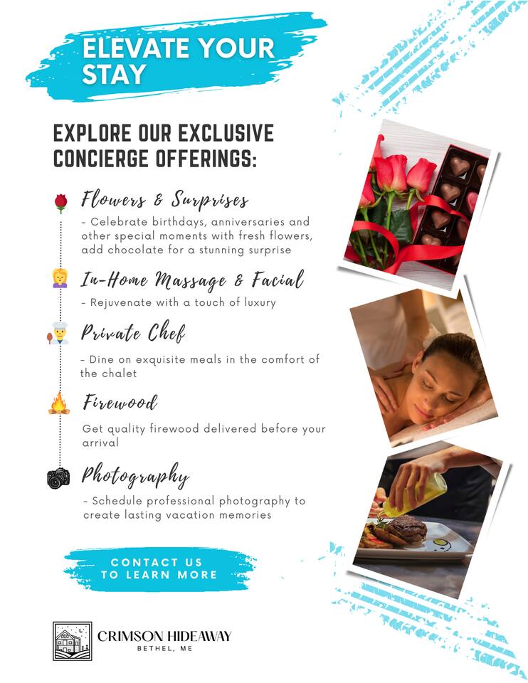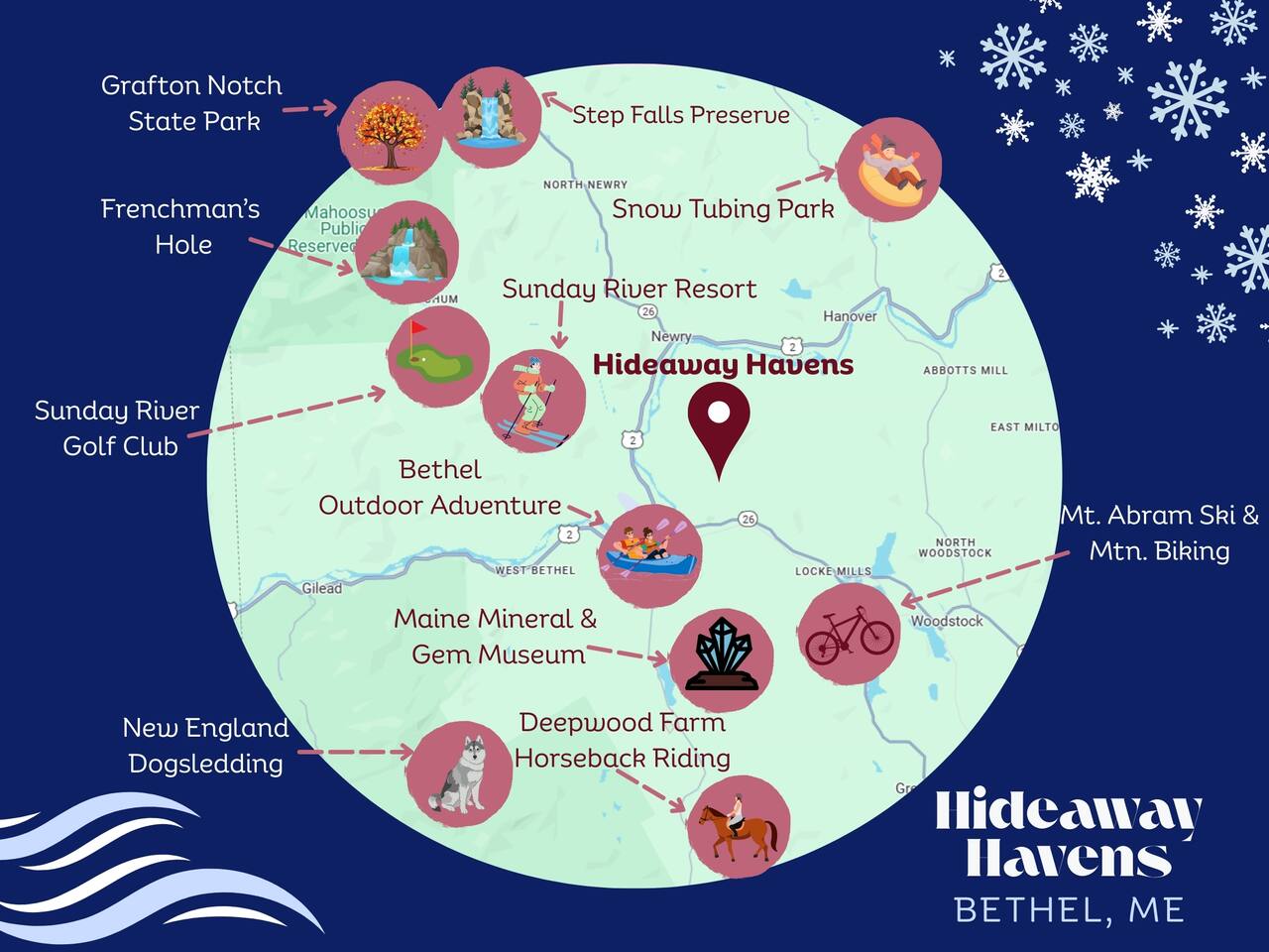 The two properties are just 2 minutes apart by car, offering privacy while keeping your group connected. (You can walk from one chalet to another in just a few minutes.) Each provides its own unique charm while ensuring your group stays comfortably close. Prioritizing guest safety, this retreat features smoke and carbon monoxide detectors, fire extinguishers, propane gas alarms, and a professionally installed playground with 9 inches of protective pine bark mulching to enhance child safety. **Prime Location** Nestled in a quiet, scenic neighborhood, these homes are just: 📍 12 minutes to Sunday River Resort 📍 5 minutes to downtown Bethel 📍 Close to hiking, skiing, and year-round outdoor adventures You'll have access to two professionally designed homes, both fully equipped with amenities and thoughtfully furnished to provide ample space for gathering, unwinding, and enjoying the stunning beauty of Maine’s mountains. ~EXPERIENCE AT A GLANCE~ CRIMSON HIDEAWAY – Cozy & Stylish Chalet (Sleeps 16) A brand-new, thoughtfully designed chalet with breathtaking panoramic views and top-tier amenities. ✔ 5 Bedrooms | 3.5 Baths | Sleeps 16 ✔ Wrap-Around Deck with Mountain Views ✔ Hot Tub, Barrel Sauna, BBQ Grill, Outdoor Dining, Fire Pit & Yoga Space ✔ Children’s Playground, Frisbee Golf & Cornhole ✔ Game Room with Arcade Games, Pool Table, Ping Pong, Air Hockey & Popcorn Station ✔ Fully Equipped Chef’s Kitchen & Dining Area ✔ Open-Concept Living Room with Fireplace, 7 Smart TVs & 1 King Bed 35 HIDEAWAY– Modern Mountain Retreat (Sleeps 13) A stunning, modern lodge-style chalet featuring expansive windows, sleek interiors, and cozy mountain vibes. ✔ 4 Bedrooms | 3 Baths | Sleeps 13 ✔ Hot Tub, BBQ Grill, Outdoor Dining, Fire Pit & Cornhole ✔ Game Room with Arcade Games, Air Hockey & Karaoke ✔ Fully Equipped Chef’s Kitchen & Dining Area ✔ Spacious Living Area with Fireplace, 4 Smart TVs & 1 King Bed 🛌 ROOM & BED DETAILS 35 Hideaway - Sleeps 13 * Main Floor: Primary King-size suite -Sleeps 2 * Upper Floor: - Queen bed - Sleeps 2 - Bunk room: Twin over Full +Twin over Twin bunks - Sleeps 5 * Basement: Queen + Twin over Twin bunk bed - Sleeps 4 * 3 full bathrooms Crimson Hideaway - Sleeps 16 * Main Floor: Primary bedroom with a King bed - Sleeps 2 * UPPER FLOOR: - Queen Canopy bedroom - Sleeps 2 - Double Queen bedroom - Sleeps 4 * Basement: - Queen bedroom - Sleeps 2 - Custom bunk room (2 Twins and 2 Queens) - Sleeps 6 * 3.5 full bathrooms Book Hideaway Havens today and experience the perfect blend of year-round adventure, relaxation, and luxury! *********** 🌲 Things to Do Nearby ★ Sunday River Ski Resort: Skiing, snowboarding, and year-round activities. ★ Grafton Notch State Park: Beautiful hiking trails, scenic views, and natural wonders. ★ Step Falls Preserve: A popular spot for waterfall views and hiking. ★ Frenchman’s Hole: A stunning swimming hole perfect for the summer months. ★ Bethel Outdoor Adventure: Go kayaking, tubing, or take a river trip. ★ Sunday River Golf Club: Scenic golf course offering beautiful views. ★ Maine Mineral and Gem Museum: Explore fascinating minerals, including pieces from the moon and Mars. ★ New England Dog Sledding: Experience thrilling dog sledding tours during the winter months. 🍴 Local Dining Favorites ✓Gemini Cafe & Bakery: Cozy café with fresh bagels, coffee, and pastries. ✓La Ferme: Farm-to-table bakery using locally sourced ingredients for delicious bagels and more. ✓Le Mu Eats: A blend of Maine’s best produce with Southeast Asian flavors and southern comfort foods. ✓Steam Mill Brewing: Relaxed setting for craft beers and classic American comfort food. ✓Mountain Social Kitchen & Bar: Craft cocktails and fusion dishes in a chic atmosphere. ✓Modern Barn: Farm-to-table dining featuring fresh oysters, steaks, and delicious cocktails. ✓Suds Pub: Great pub food, beers, and live entertainment. ✓Matterhorn Ski Bar: A lively après-ski spot with drinks, live music, and great energy. ✓The Millbrook Tavern & Grille: Casual dining with live music and a diverse menu. ✓Cho Sun: Authentic Korean and Japanese cuisine with fresh sushi and traditional dishes.